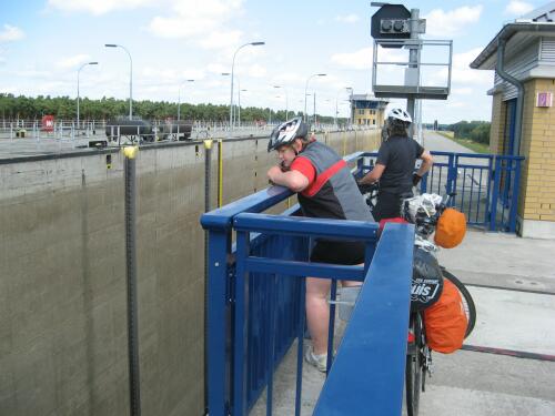 Auf einem von unserem Wirt empfohlenen Schleichweg erreichten wir Pretzien und das Pretziener Wehr. Auf der Hauptroute ging es vorbei an Schönebeck nach Magdeburg. Wir nahmen uns Zeit für eine Dombesichtigung und das Hundertwasserhaus sowie für das Otto von Guericke Zentrum und radelten rechteslbig weiter bis nach Alt Löstau. Mit Blick auf Hohenwarthe und die Elbaue legten wir an einem schönen Rastplatz die Mittagspause ein. Das Wasserstraßenkreuz Hohenwarthe mit seiner Doppelschleuse ist ein beeindruckendes Bauwerk.